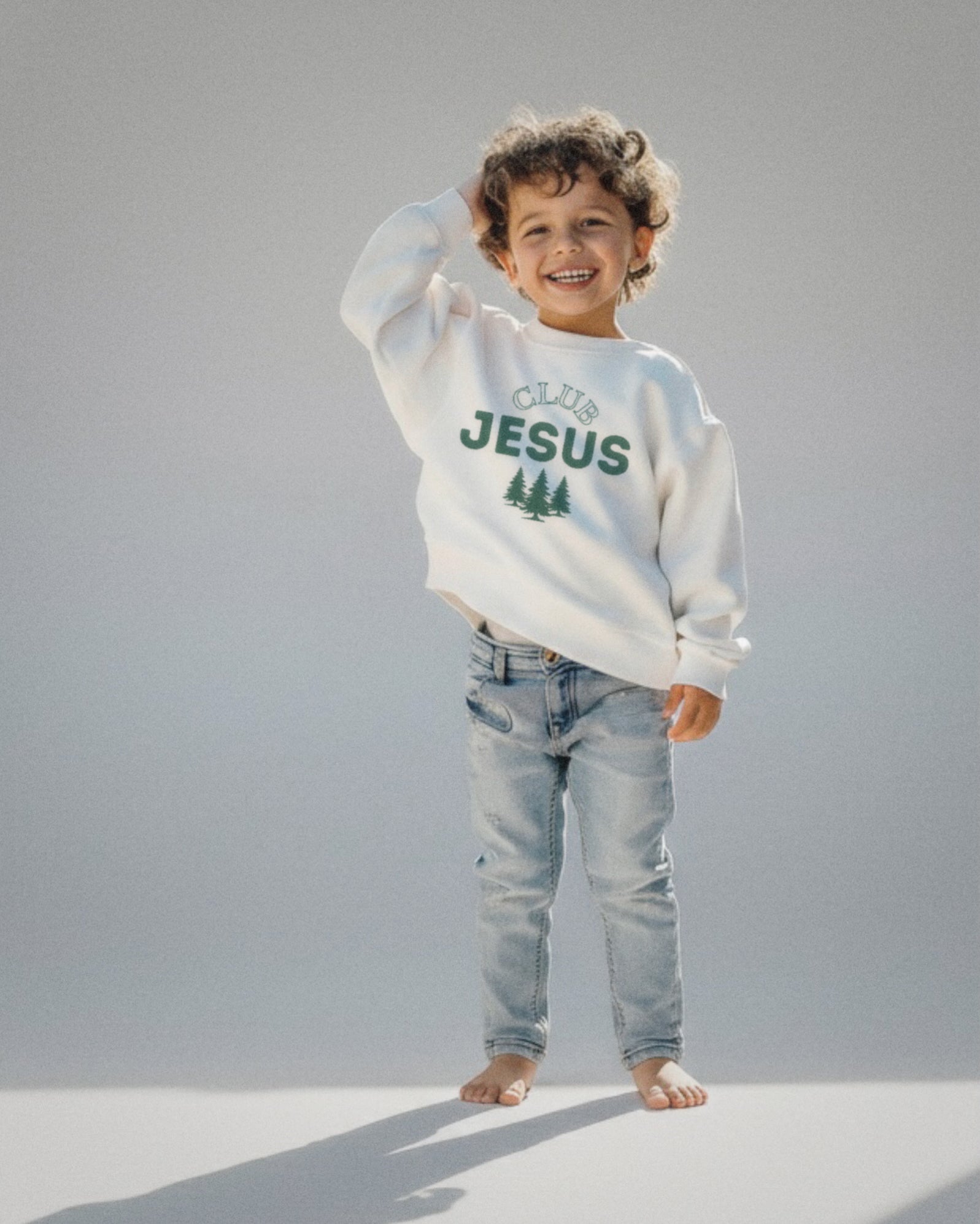 "Club Jesus" Trio Tree Graphic Crewneck - White