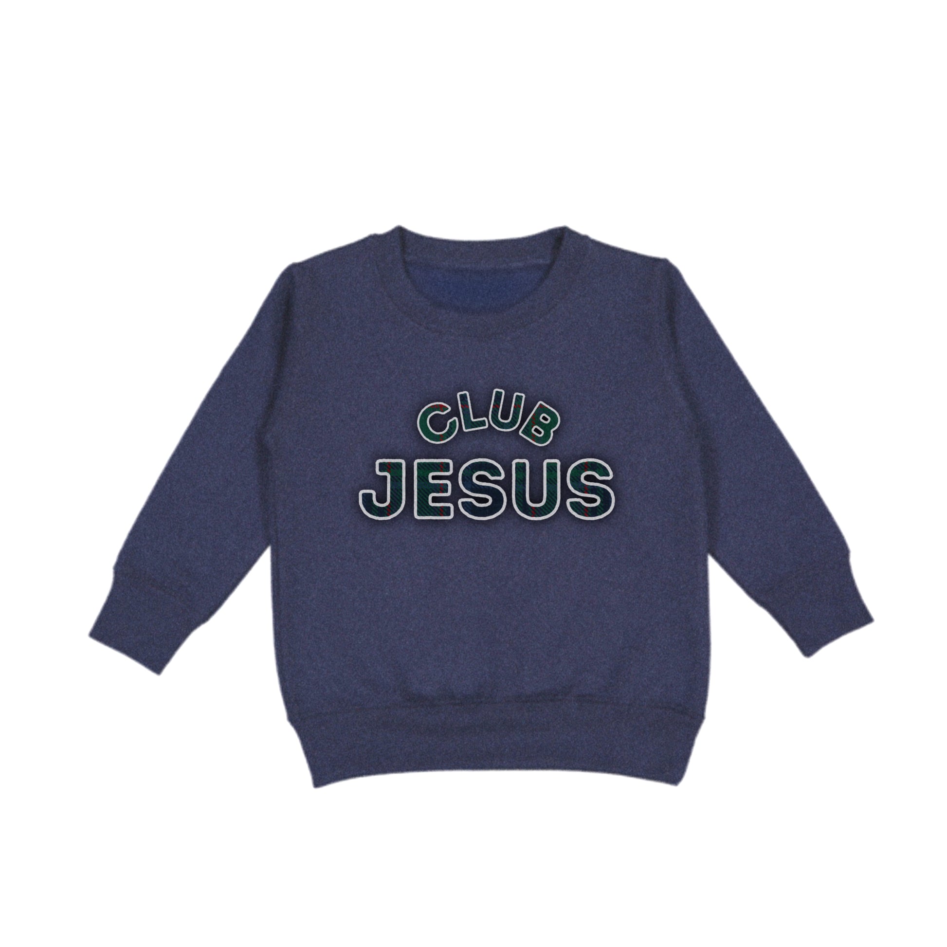 Embroidered "Club Jesus" Crewneck - Green Plaid